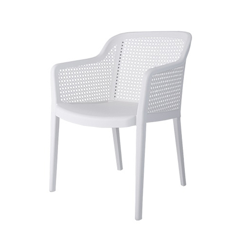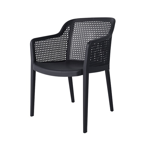 Silla en polipropileno con diseño de rejillas entrelazadas. Silla de alta resistencia y duración para intemperie, ya que es resistente a los rayos ultravioleta (UV) y al ambiente salino. Dimensiones: 60 x 60 x 81 cm. Colores : negro, blanco, gris, caramelo (colores sujetos a disponibilidad)